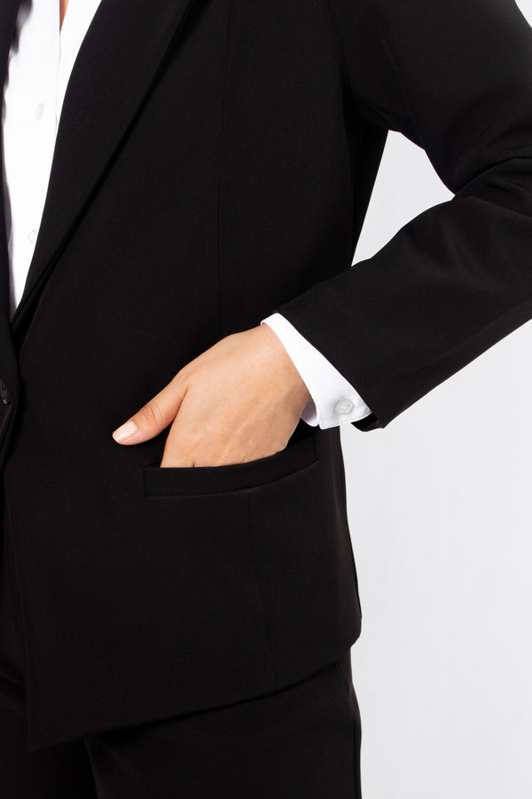 Estilo: Blazer clásico con corte estructurado, ideal para outfits formales o elegantes casuales