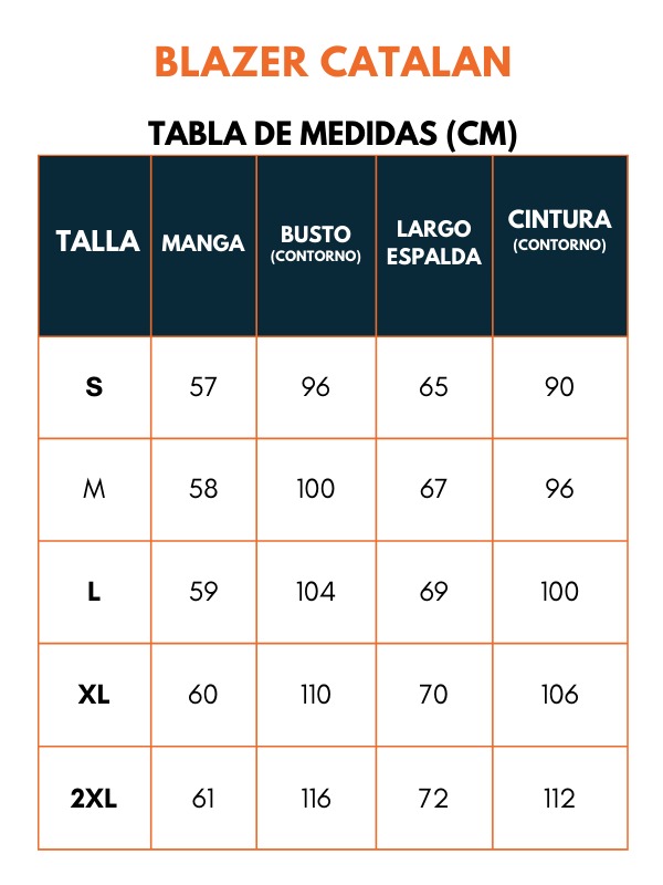 Material: Tela catalán, sastre con acabado impecable, lleva entretela