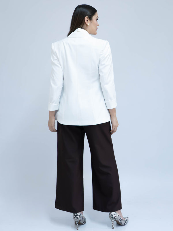 Corte: Recto y estructurado, estiliza la silueta.