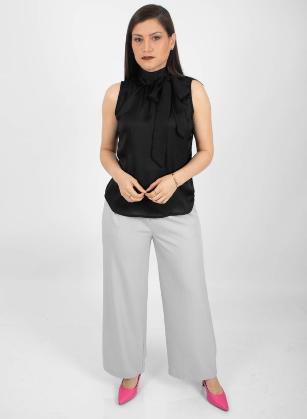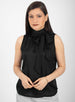Cuello alto con lazo largo trasero: Versátil para anudar al frente o dejar caer para un toque relajado