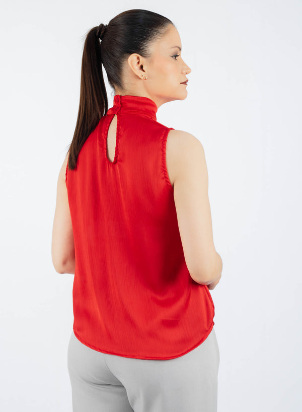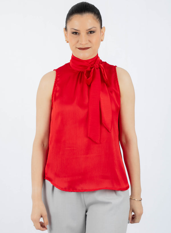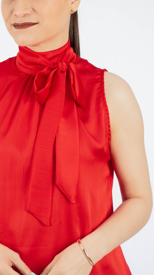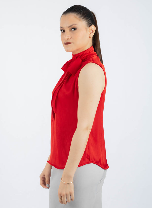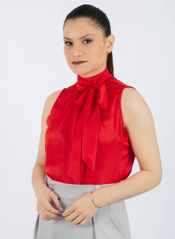 • Cuello alto con lazo largo trasero: Versátil para anudar al frente o dejar caer para un toque relajado