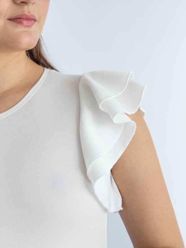 Volantes en hombros que añaden volumen y elegancia