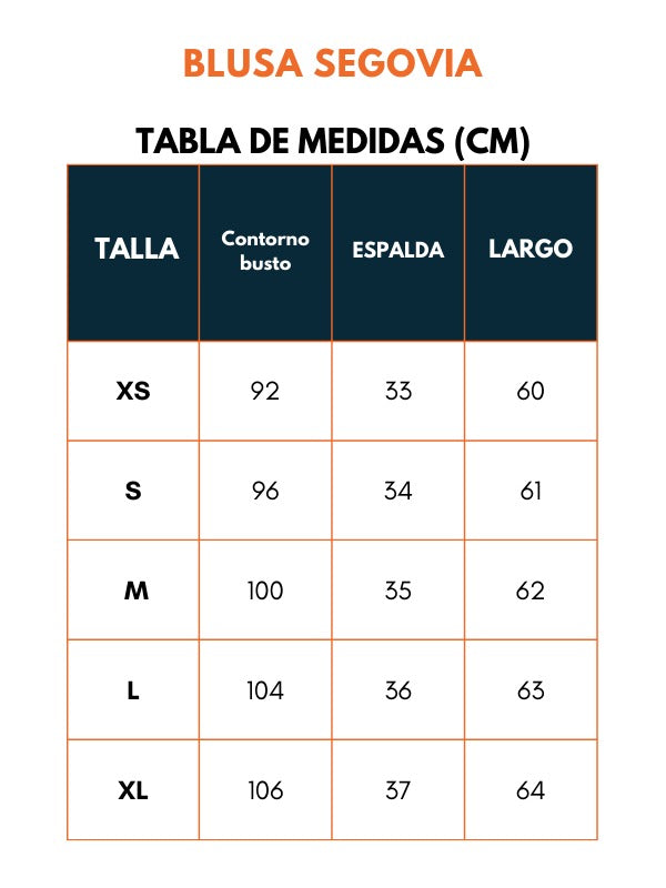 • Ana: La modelo Ana tiene una estatura de 169 cm, un contorno de busto de 92 cm, una cintura de 74cm y un contorno de cadera de 106 cm.