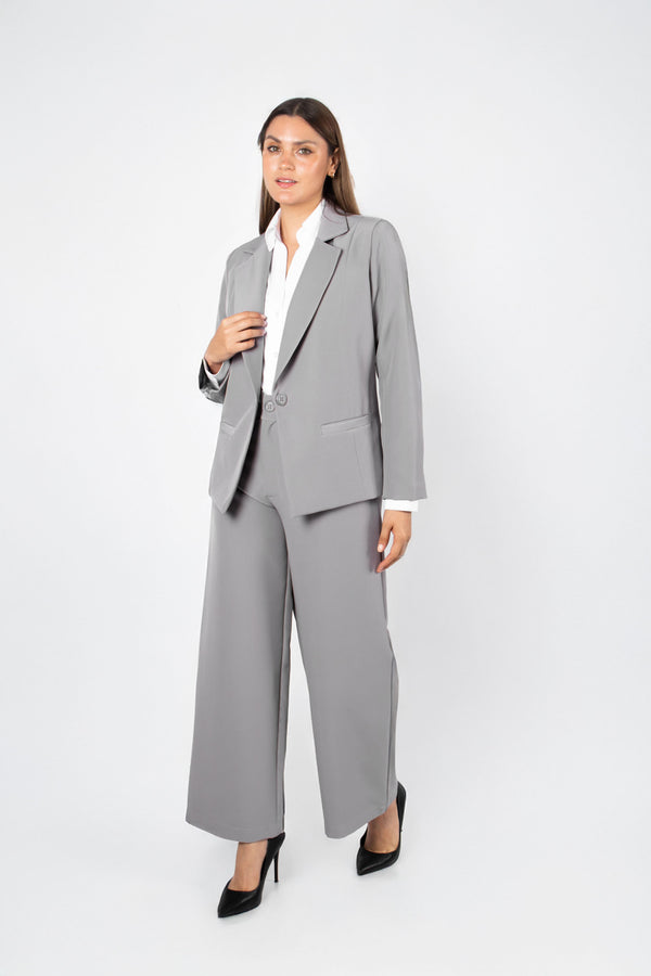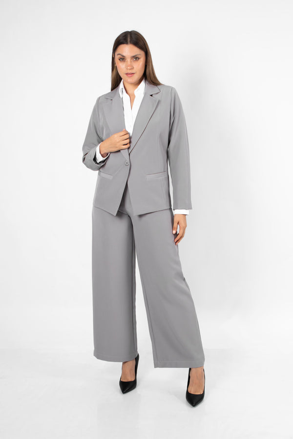 Luce elegante y sofisticada con nuestro conjunto Catalán, compuesto por un blazer estructurado y un pantalón de corte recto que estiliza la figura. Confeccionado en tela de alta calidad, ligera y con caída perfecta, ideal para tus reuniones importantes o eventos especiales.
