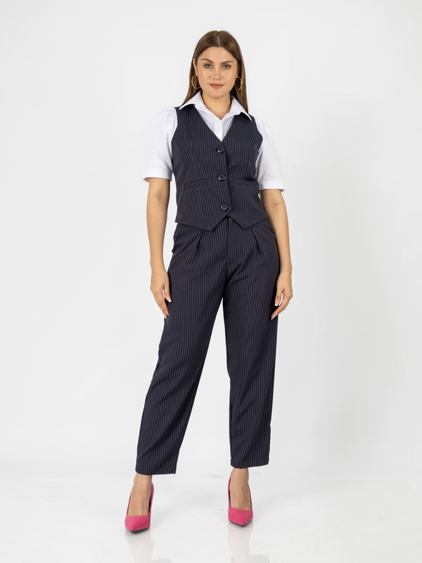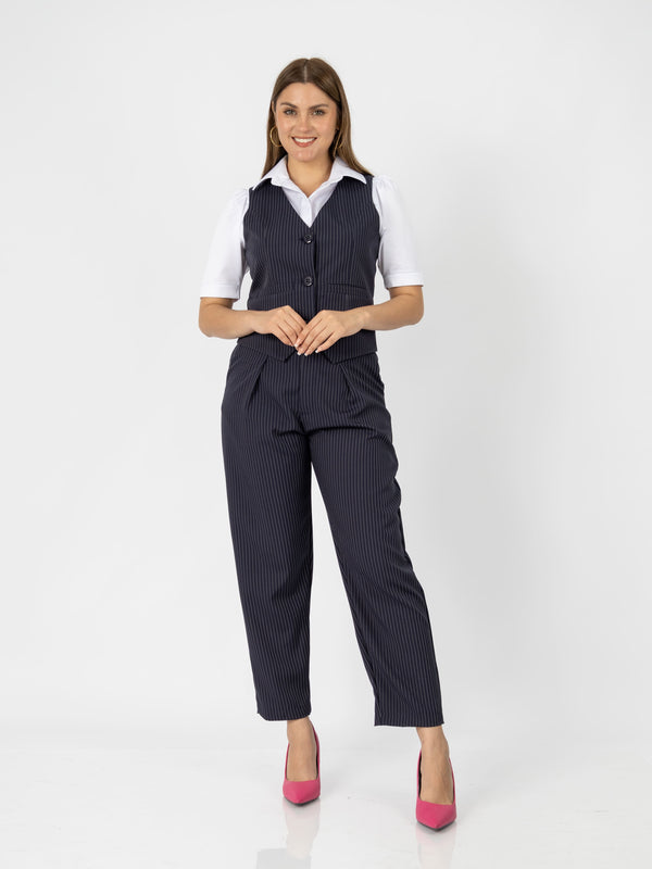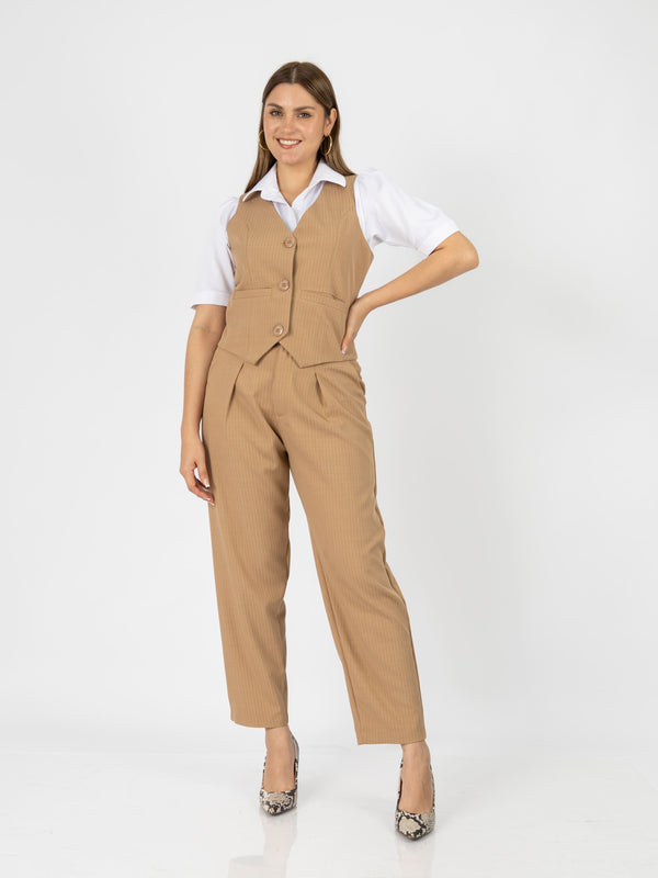 Luce impecable y segura en tu entorno laboral con el conjunto Patrick, diseñado para mujeres que desean proyectar profesionalismo sin perder el estilo. Este set incluye un chaleco entallado y un pantalón de corte recto que estiliza la figura y ofrece total comodidad durante el día.