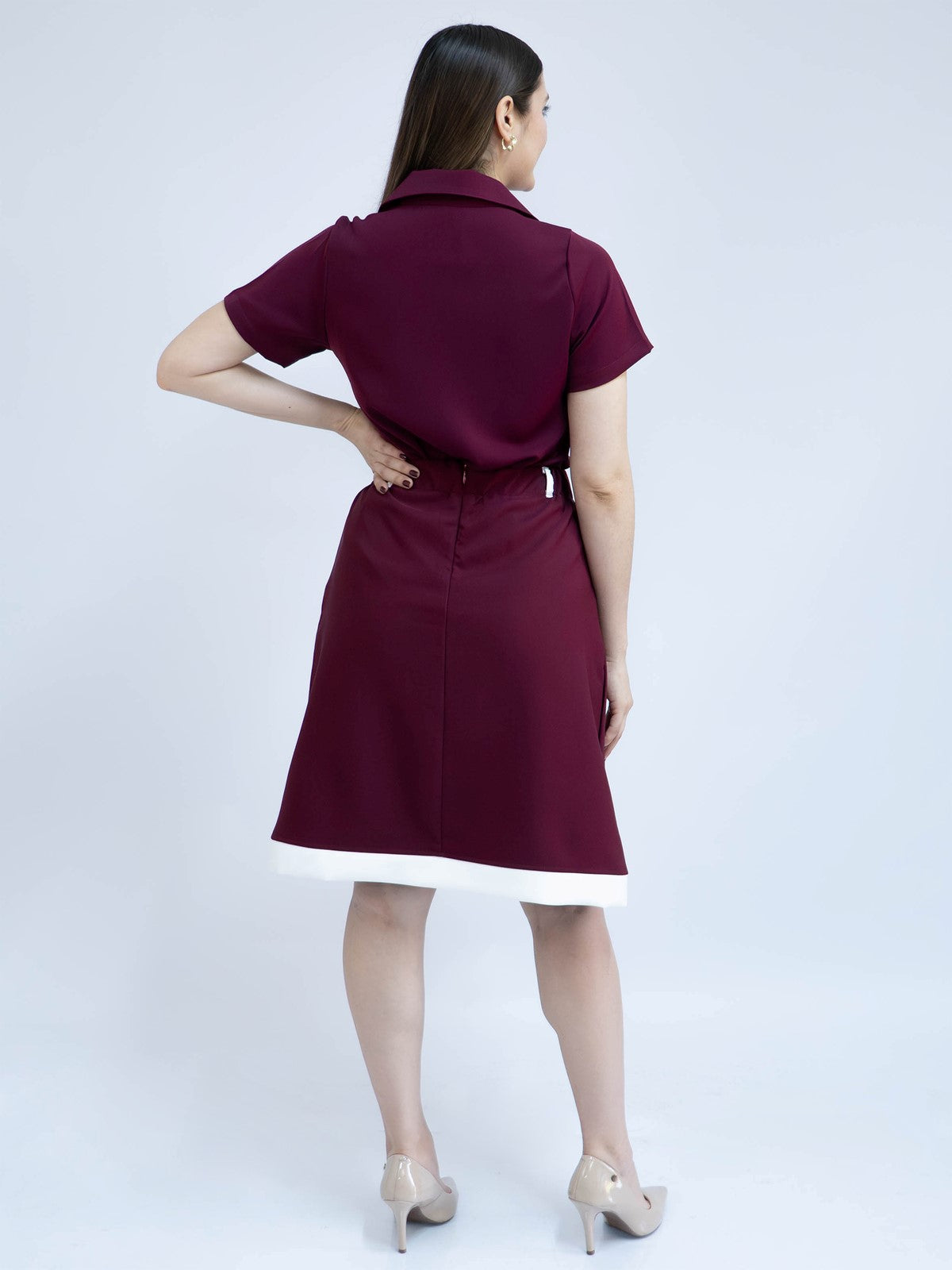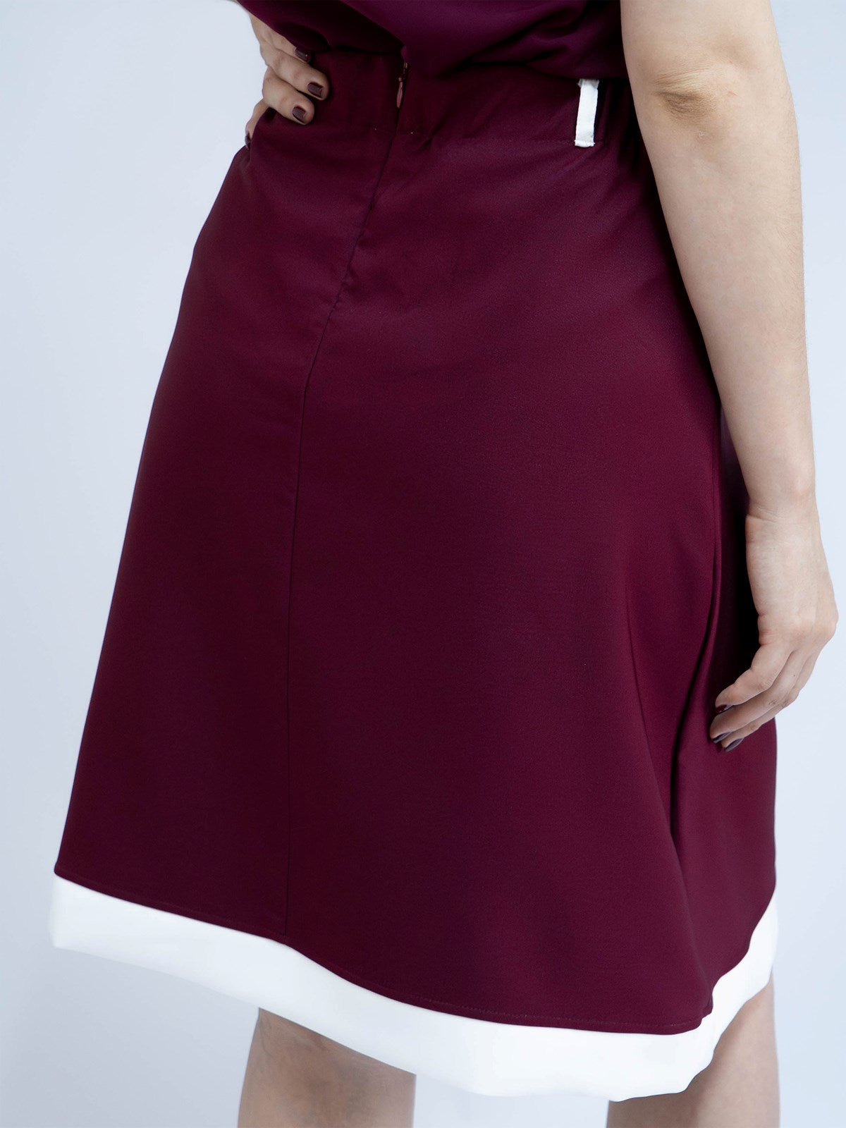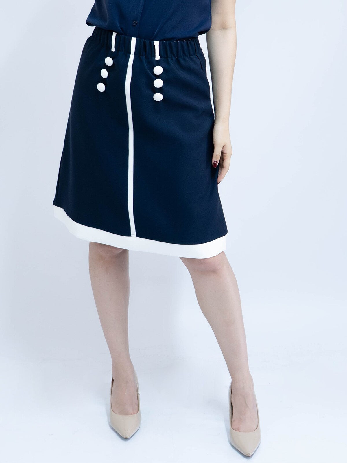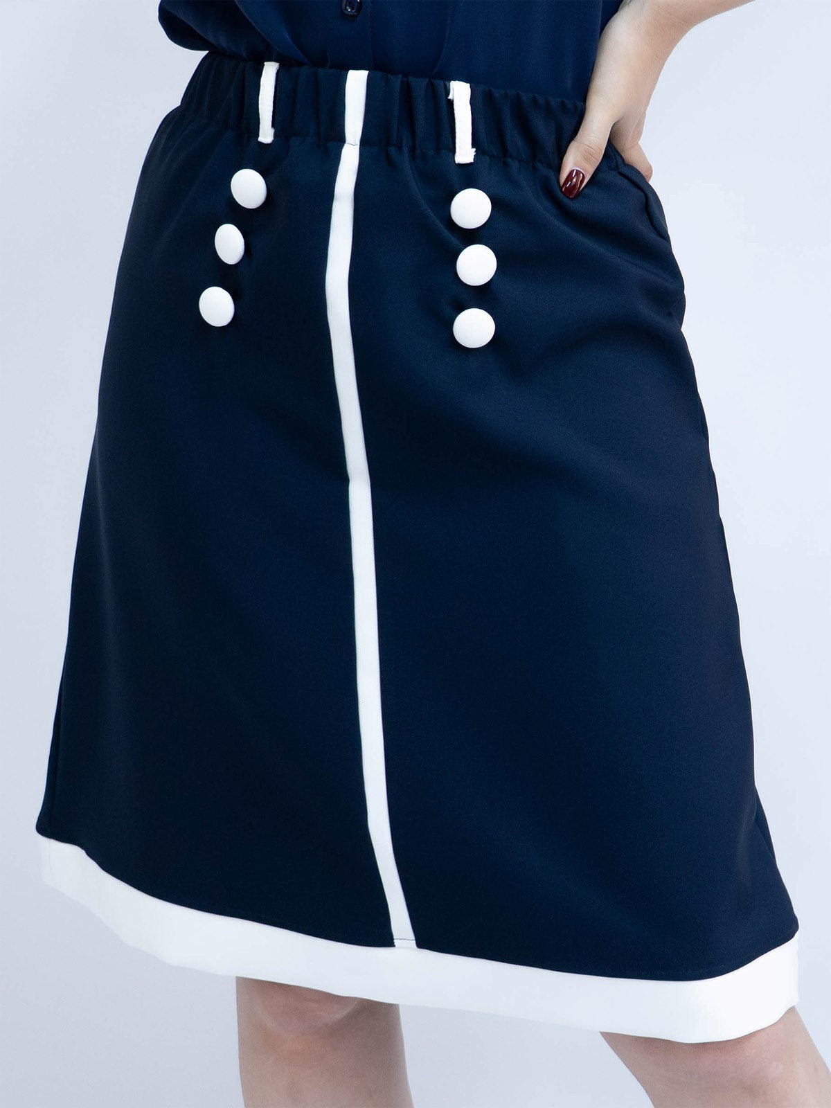 - Corte: Corto, sobre la rodilla, con pretina definida.
