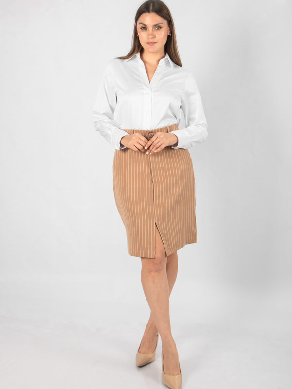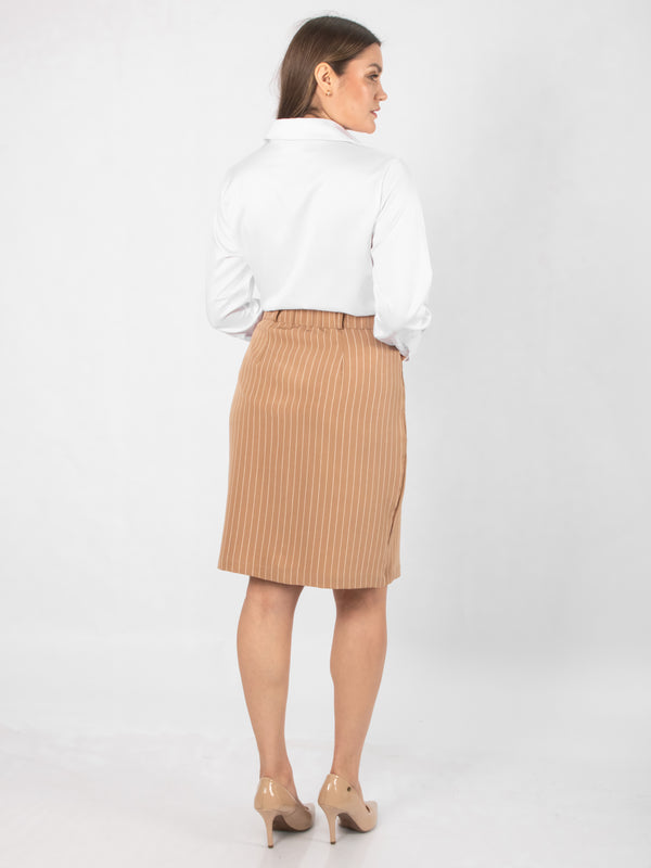 Diseñada para mujeres que buscan un equilibrio entre elegancia y estilo contemporáneo, esta falda es perfecta para entornos profesionales y salidas con estilo.
