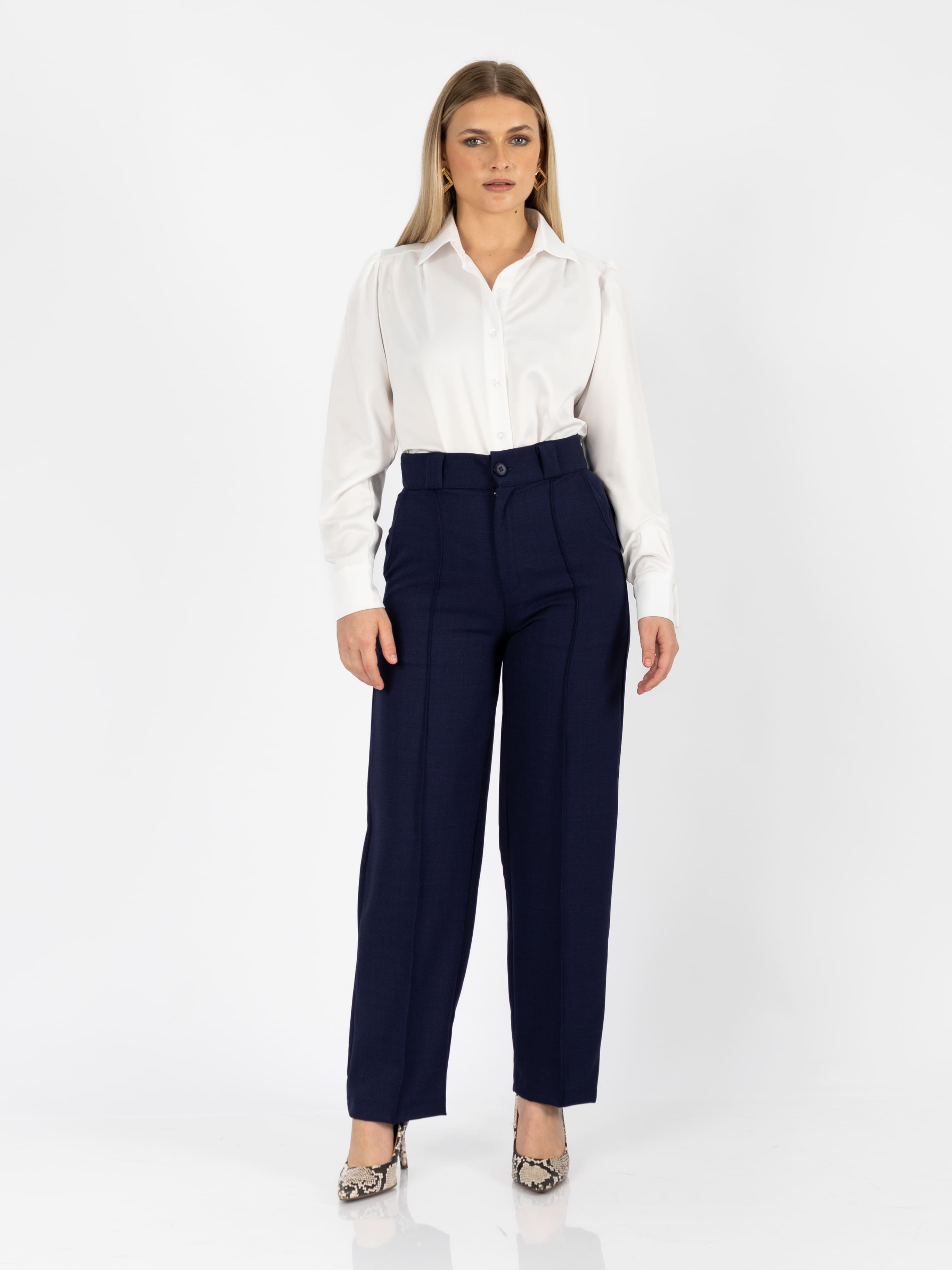 ¡Atrévete a destacar con estilo! El pantalón NAVIGATA es una prenda vibrante y sofisticada que no puede faltar en tu clóset. Confeccionado con una silueta de tiro alto y piernas rectas, estiliza la figura y alarga visualmente las piernas.