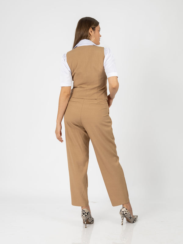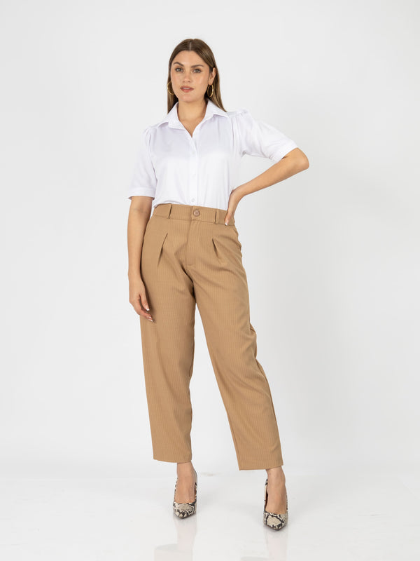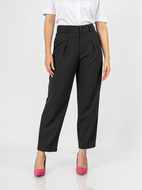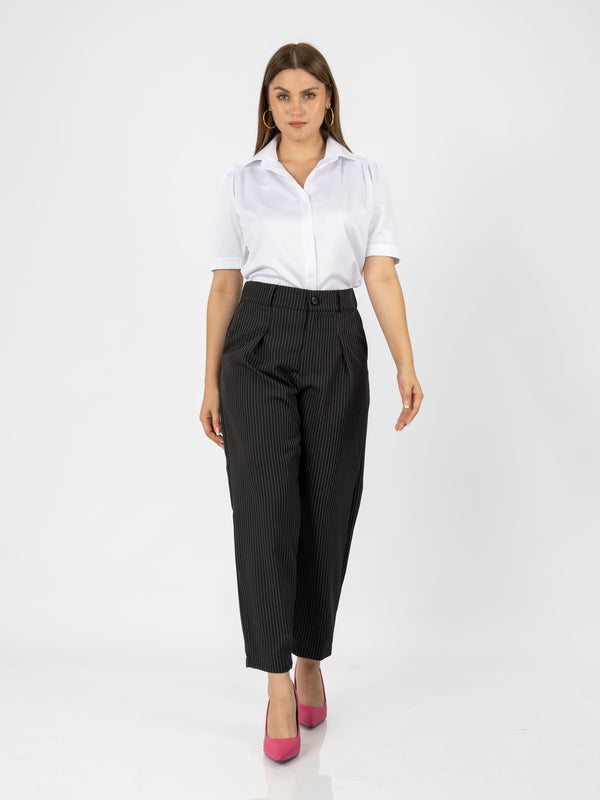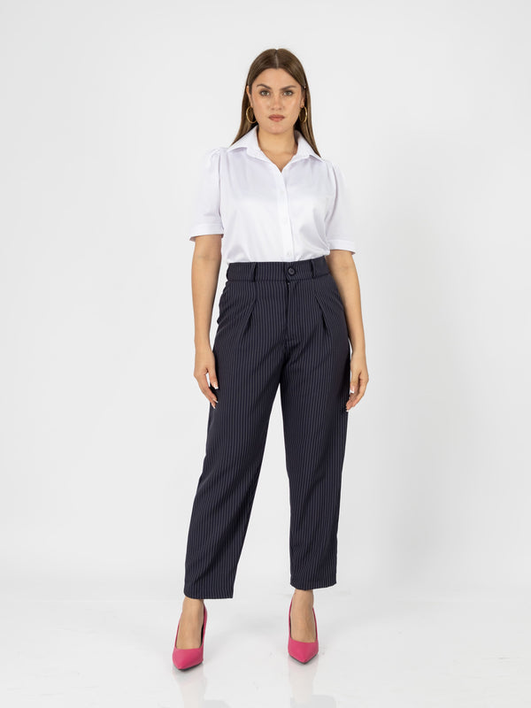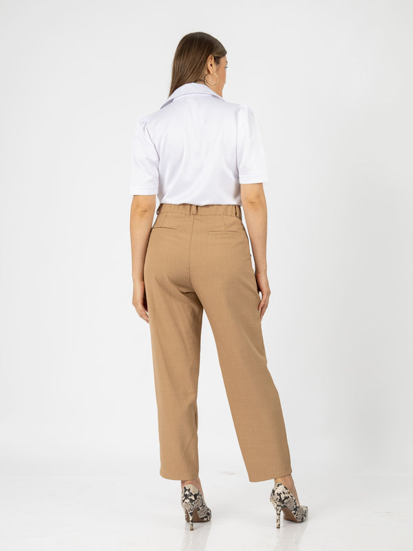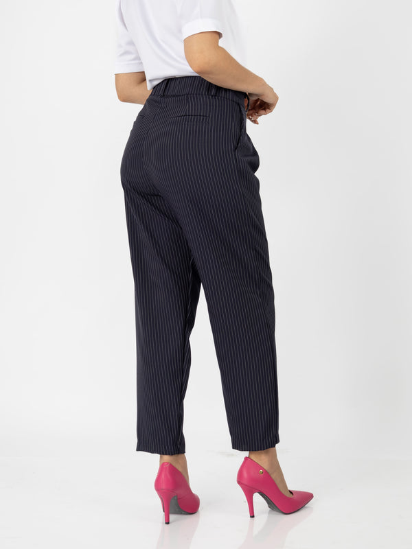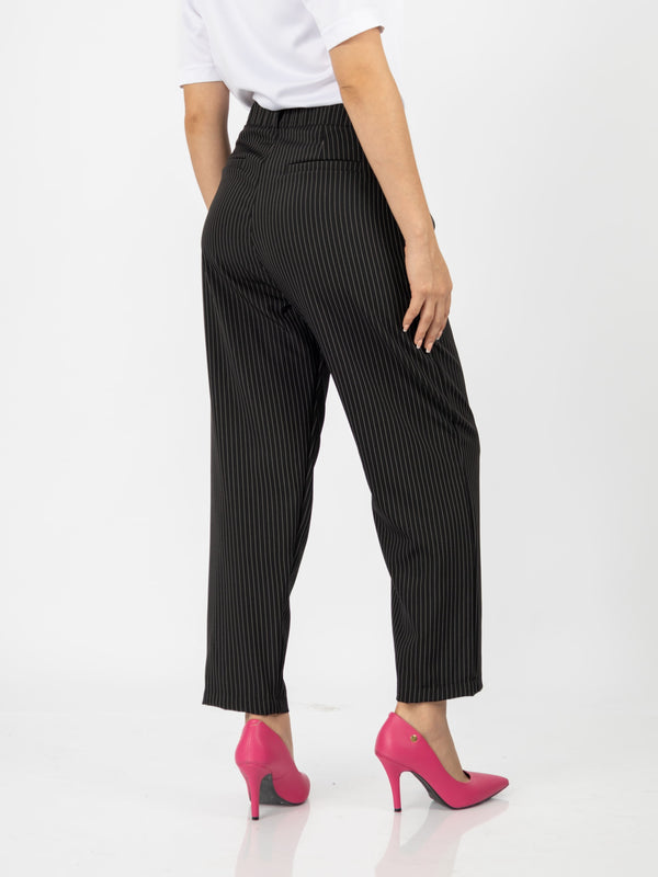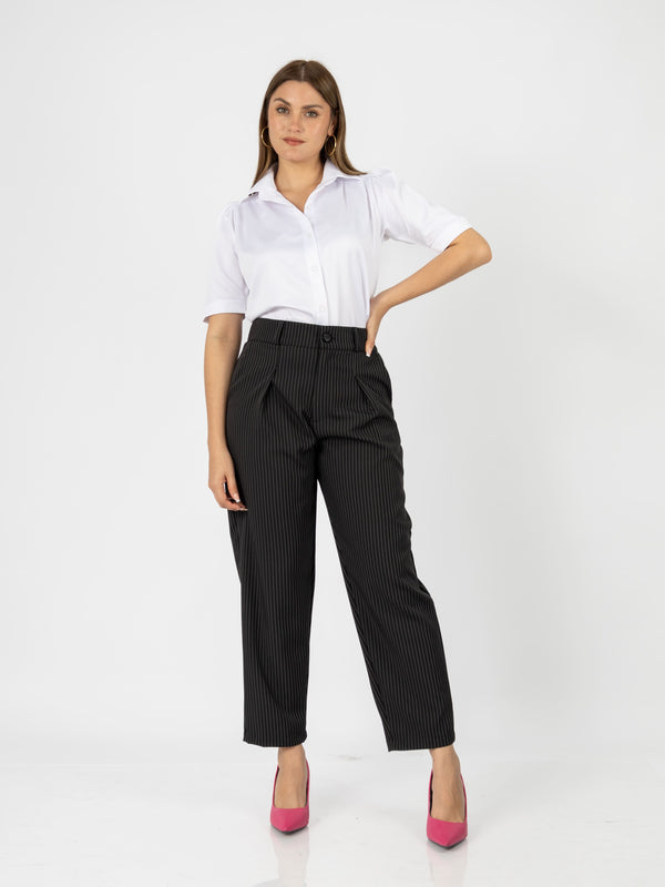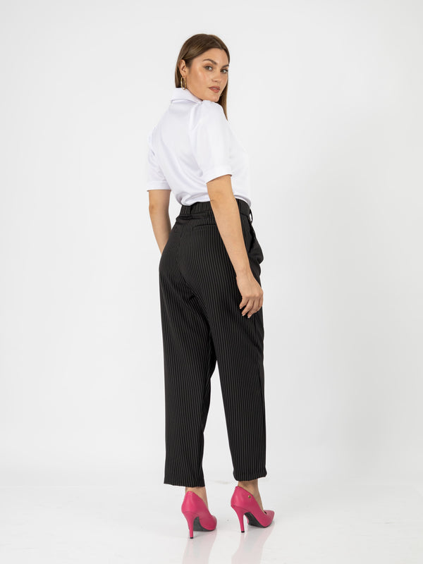 El pantalón Patrick combina estilo y comodidad con su diseño tipo slouchy y un elegante estampado de rayas. Su cintura con elástico en la parte trasera garantiza un ajuste perfecto, ideal para un look moderno y sofisticado.