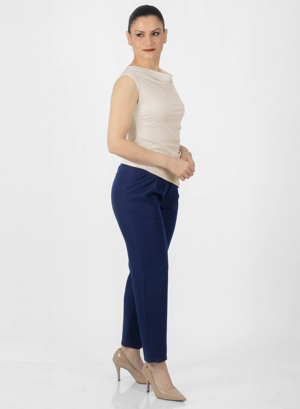 • Cuello drapeado, detalle distintivo que aporta volumen y elegancia al escote